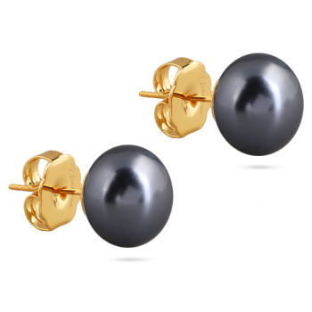 Изготовлено из ювелирного сплава на основе латуни с гальваническим покрытием золотом. Изделие украшает майорский жемчуг темно-серого цвета диаметром 12мм. Застёжка-гвоздики.