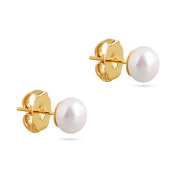 Изготовлено из ювелирного сплава на основе латуни с гальваническим покрытием золотом. Изделие украшает майорский жемчуг белого цвета диаметром 8мм. Застёжка-гвоздики.
