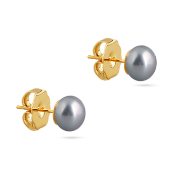 Изготовлено из ювелирного сплава на основе латуни с гальваническим покрытием золотом. Изделие украшает майорский жемчуг серо-голубого цвета диаметром 8мм. Застёжка-гвоздики.