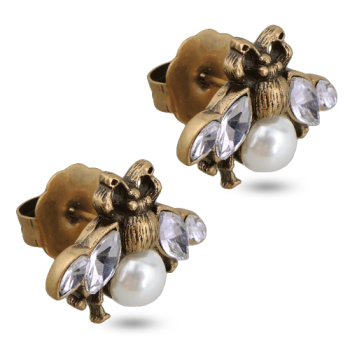 Пусеты (Майорка белая, кристаллы белые; покрытие античное золото), Есть комплект