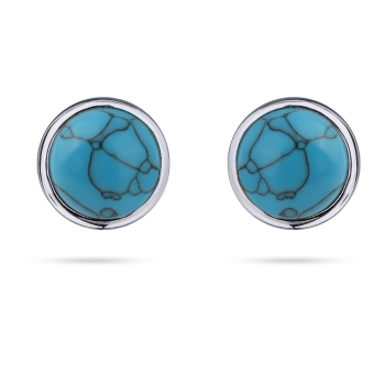 Изготовлено из ювелирного сплава на основе латуни с гальваническим покрытием родием. Изделие украшает бирюза. Диаметр серьги 1, 3см. Застежка-гвоздики.