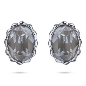 Изготовлено из ювелирного сплава на основе латуни с гальваническим покрытием родием. Изделие украшают кристаллы SW дымчато-серого цвета. Размер серьги 14х10мм. Застежка-гвоздики.