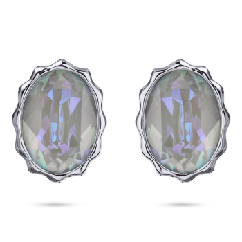 Изготовлено из ювелирного сплава на основе латуни с гальваническим покрытием родием. Изделие украшают кристаллы SW серо-синего цвета. Размер серьги 14х10мм. Застежка-гвоздики.