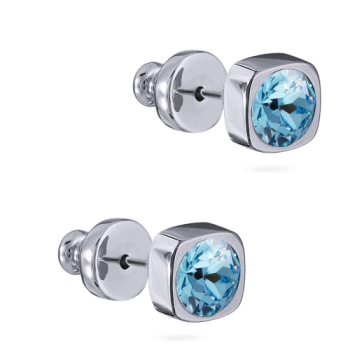 Изготовлено из ювелирного сплава на основе латуни с гальваническим покрытием родием. Изделие украшают кристаллы SW цвета аквамарин диаметром 4мм. Застежка-гвоздики.