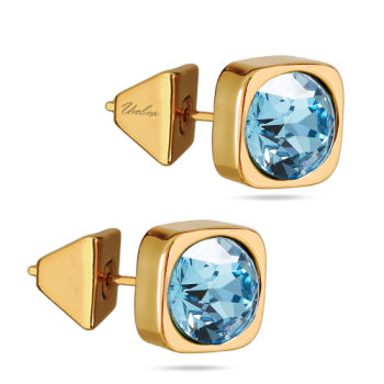 Изготовлено из ювелирного сплава на основе латуни с гальваническим покрытием золотом. Изделие украшают кристаллы SW цвета аквамарин диаметром 8мм.