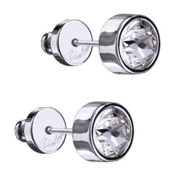 Изготовлено из ювелирного сплава на основе латуни с гальваническим покрытием родием. Изделие украшают кристаллы SW белого цвета диаметром 6мм. Застежка-гвоздики.