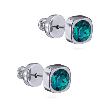 Изготовлено из ювелирного сплава на основе латуни с гальваническим покрытием родием. Изделие украшают кристаллы SW изумрудного цвета диаметром 4мм. Застежка-гвоздики.