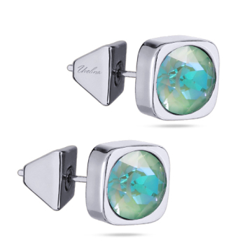 Изготовлено из ювелирного сплава на основе латуни с гальваническим покрытием родием. Изделие украшают кристаллы SW мятного цвета диаметром 8мм.