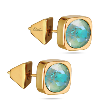Изготовлено из ювелирного сплава на основе латуни с гальваническим покрытием золотом. Изделие украшают кристаллы SW мятного цвета диаметром 8мм.