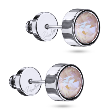 Изготовлено из ювелирного сплава на основе латуни с гальваническим покрытием родием. Изделие украшают кристаллы SW цвета пыльная роза диаметром 6мм. Застежка-гвоздики.