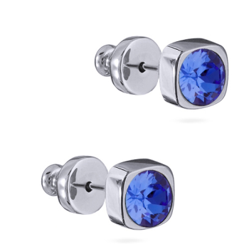 Изготовлено из ювелирного сплава на основе латуни с гальваническим покрытием родием. Изделие украшают кристаллы SW цвета сапфир диаметром 4мм. Застежка-гвоздики.