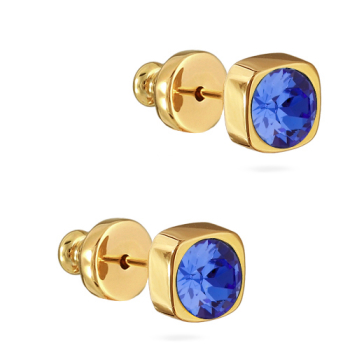 Изготовлено из ювелирного сплава на основе латуни с гальваническим покрытием золотом. Изделие украшают кристаллы SW цвета сапфир диаметром 4мм. Застежка-гвоздики.