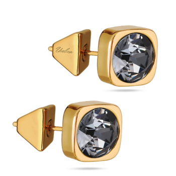 Изготовлено из ювелирного сплава на основе латуни с гальваническим покрытием золотом. Изделие украшают кристаллы SW темно-серого цвета диаметром 8мм.