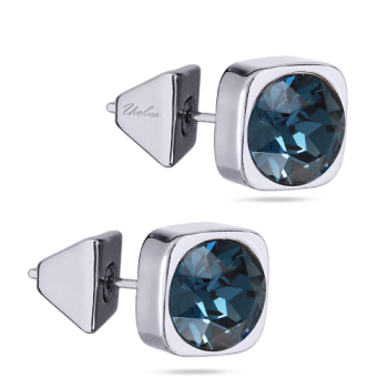 Изготовлено из ювелирного сплава на основе латуни с гальваническим покрытием родием. Изделие украшают кристаллы SW темно-синего цвета диаметром 8мм.