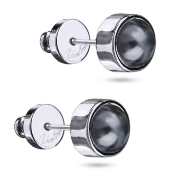 Изготовлено из ювелирного сплава на основе латуни с гальваническим покрытием родием. Изделие украшает жемчуг Майорка диаметром 6мм темно-серого цвета. Застежка-гвоздики.