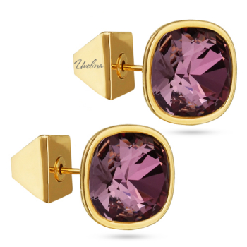 Изготовлено из ювелирного сплава на основе латуни с гальваническим покрытием золотом. Изделие украшают кристаллы SW цвета бургунди диаметром 10мм. Застежка-гвоздики.