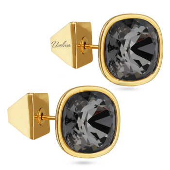 Изготовлено из ювелирного сплава на основе латуни с гальваническим покрытием золотом. Изделие украшают кристаллы SW темно-серого цвета диаметром 10мм. Застежка-гвоздики.