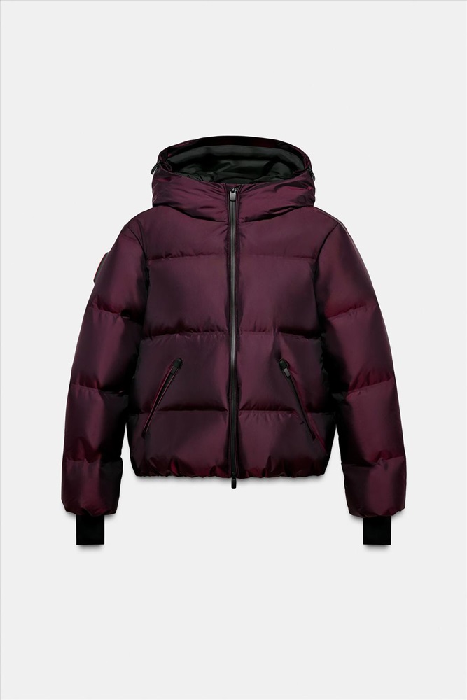 High collar with adjustable zip hoodie. long sleeve with skipass pocket, finished with elastic and cuffs with thumbhole. Adjustable ventilation in the armpits with concealed zip. Front pockets with inner fleece lining and zip fastening. Inside mobile phone pocket and inside mesh pocket for gloves with glasses cleaner. Hem finished in elastic with adjustable drawstrings. Detachable inner skirt with zip and adjustable hem to prevent cold air entry. Front fastening with double-slider zip with inner fleece-lined placket to protect the face.