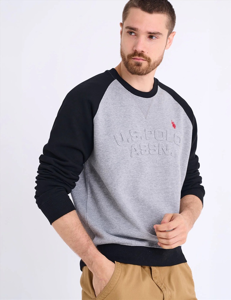 RAGLAN SLEEVE EMBOSSED FLEECE PULLOVER