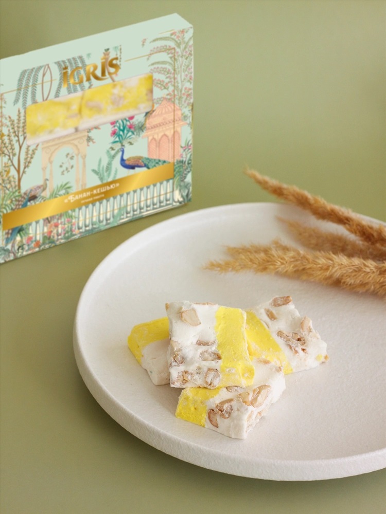 Состав: вода питьевая, сахар-песок, загуститель: крахмал кукурузный, регулятор кислотности: лимонная кислота, кешью, экстракт мыльного корня, ароматизатор идентичный натуральному :"банан", пищевой краситель: "тартразин".