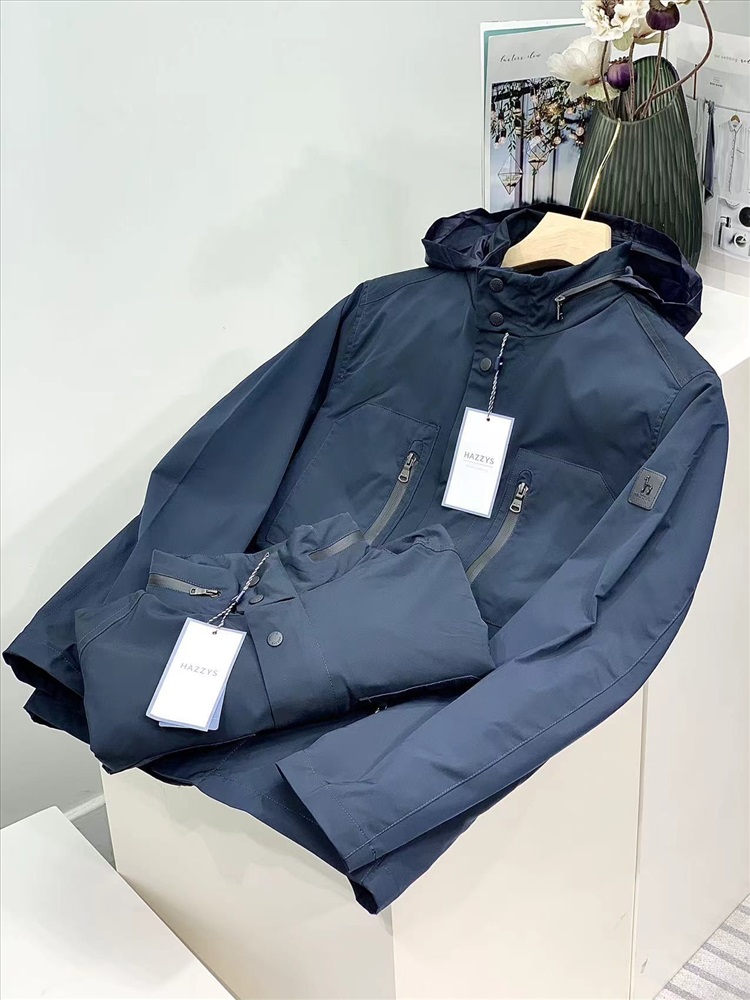 мужская ветрозащитная и водонепроницаемая складная куртка с капюшоном HAZZYS для осени, строгий и простой стиль, с большими накладными карманами для сращивания, чтобы показать повседневный и модный рабочий стиль, она достаточно шикарна, без слишком большого количества способов или комбинаций. Трехмерный крой, сращивание подкладки, несколько карманов для удобного хранения и скрытый капюшон для повседневного и практичного ношения. Корпус выполнен из проклеенных бесшовных швов во многих местах, а рукава украшены квадратными кожаными логотипами и собаками. Он имеет все функции для работы на открытом воздухе.