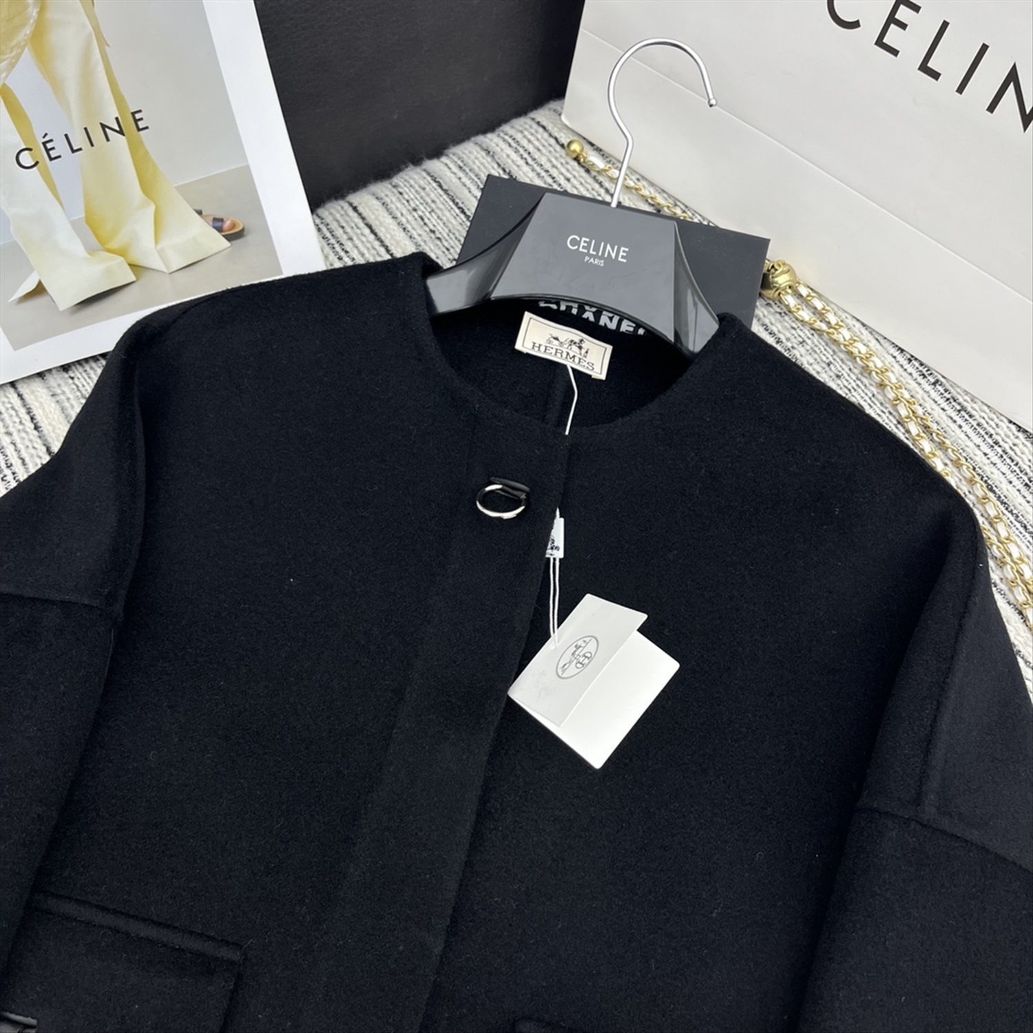 Распродажа Черный 22-15-2 Настоятельно рекомендуется осенне-зимняя серия 2023. Ее * новое осенне-зимнее двустороннее кашемировое пальто из сращенной натуральной кожи с пятью кольцами с золотой пряжкой YB1:1 индивидуальная свободная версия 2 цвета и три кода