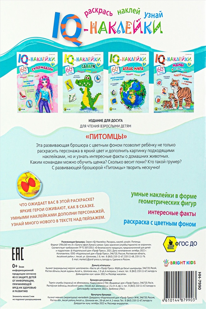 Модель: Развивающая брошюра. IQ-Наклейки. ПИТОМЦЫ (НН-7990) А4,8л