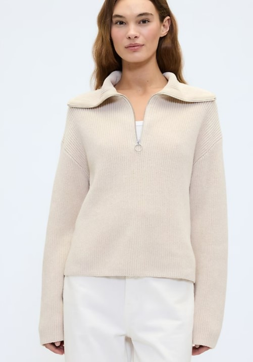 Relaxed Ribbed Quarter-Zip Sweater