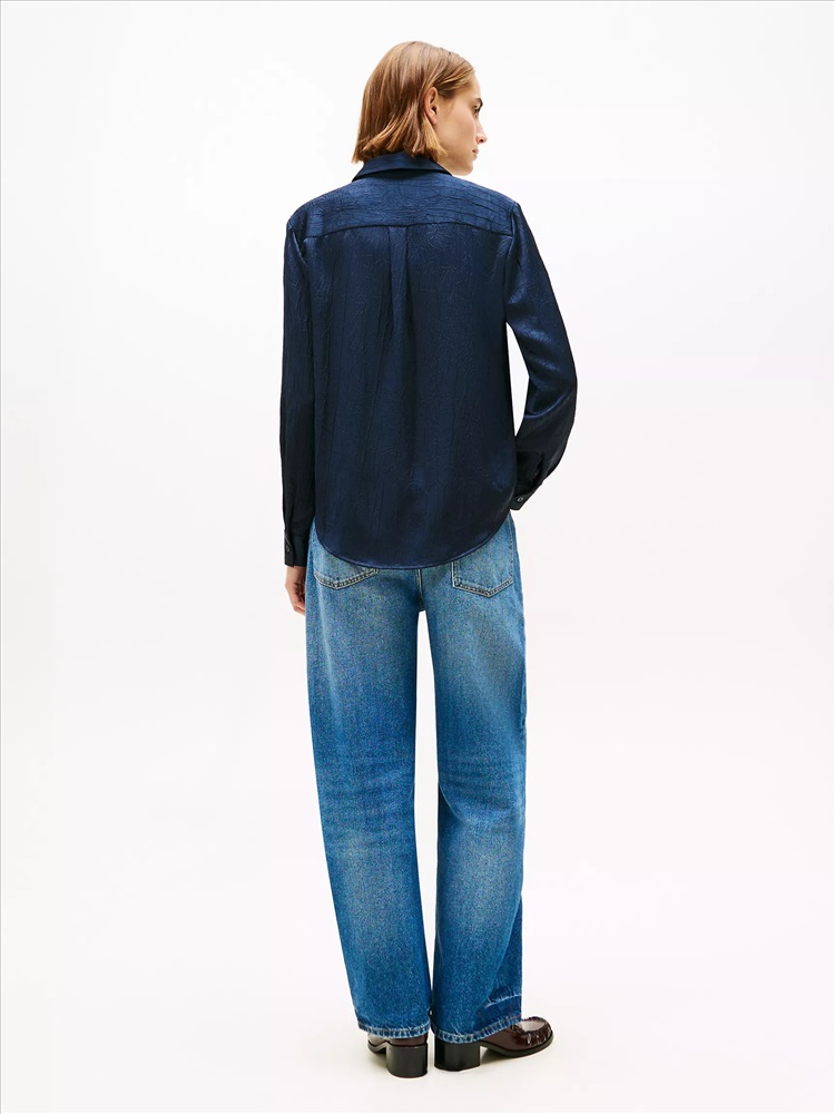 Relaxed Textured Stretch Satin Shirt