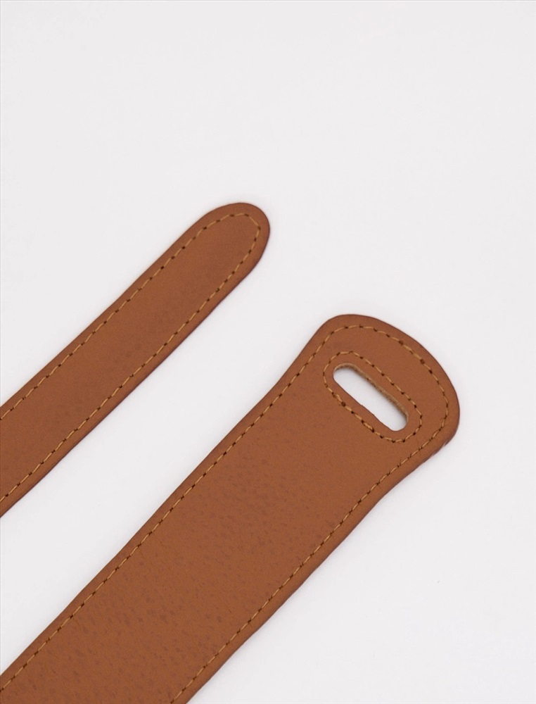 Ремень средней ширины с отверстием для продевания язычка. Минималистичный дизайн время позволяет комбинировать аксессуар с разными типами изделий. В составе 100% натуральная кожа. Представлен в коричневом и бордовом цвете.