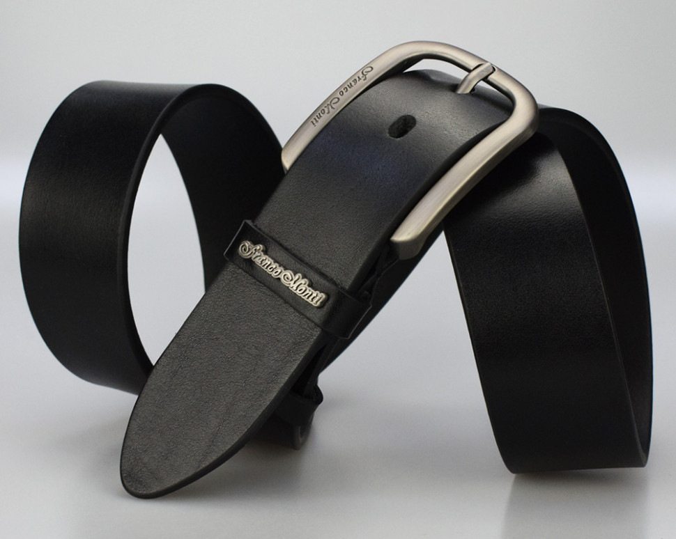 Ширина: 40мм Длина: 105-125 см Производитель: Franсo Monti Цвет: Черный Ремень джинсовый шириной 40 мм, с элементами ручной работы. Комментарии к товару