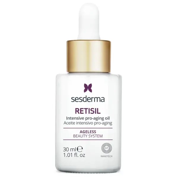 Precio unidad: 119.97 € / 100 ml Marca: 46,95 Sesderma Retisil Aceite Intensivo 30 ml Mejora la firmeza y reduce las arrugas este aceite facial intensivo que estimula la síntesis de colágeno, dejando tu piel más suave y elástica. BENEFICIOS - Fórmula con retinol y ácido hialurónico. - Combate los signos del envejecimiento, como las arrugas, renovando tu piel y proporcionándole un aspecto más liso y uniforme. - Además, unifica el tono de la piel, potencia su luminosidad y mejora el aspecto de las manchas. - Potencia y aumenta la hidratación de tu piel para un aspecto radiante y saludable. Комментарии к товару