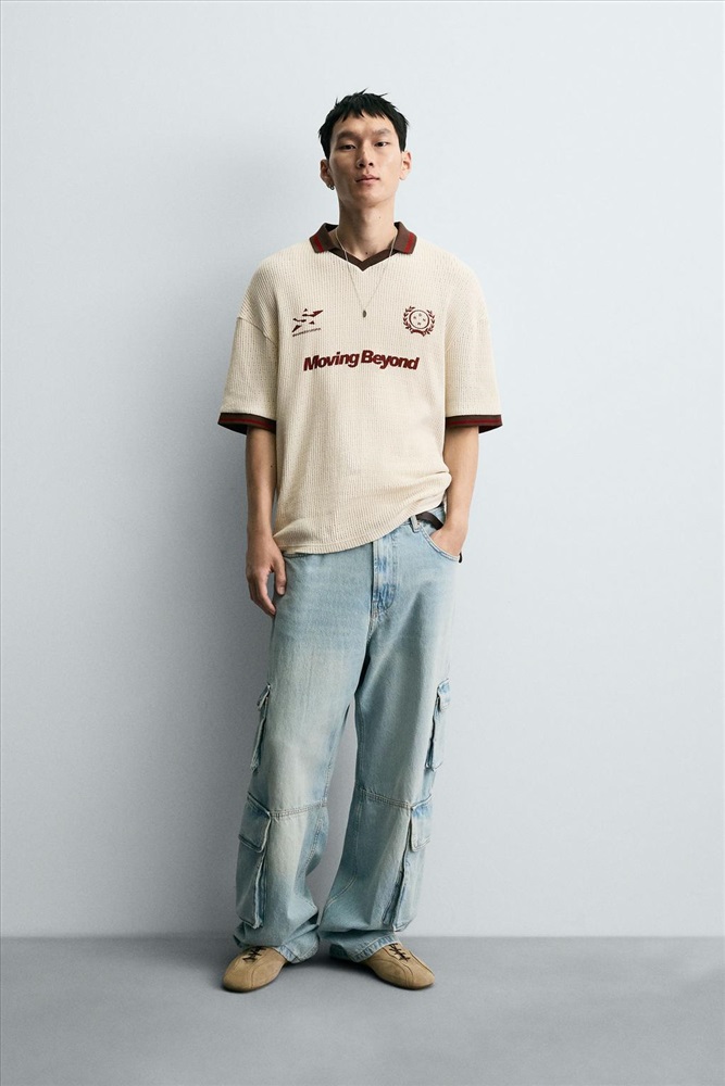 RETRO FOOTBALL TEXTURED POLO SHIRT