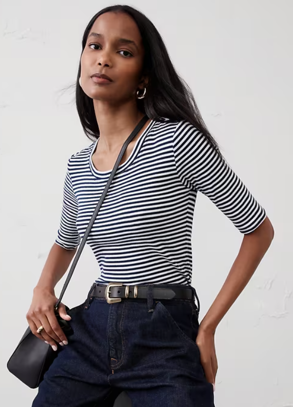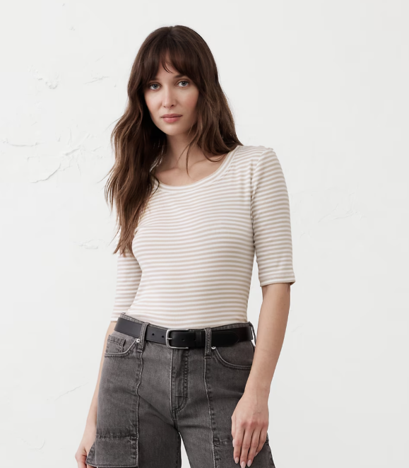 Ribbed Elbow-Sleeve T-Shirt