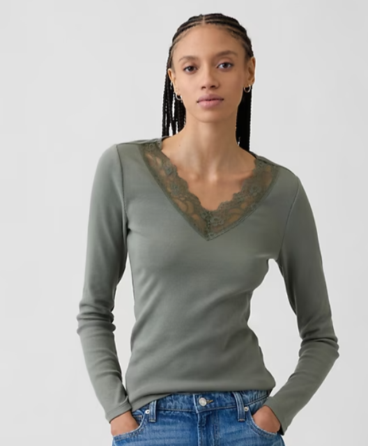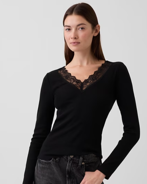 Ribbed Lace-Trim Top