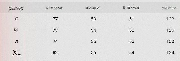 Размеры: S M L XL