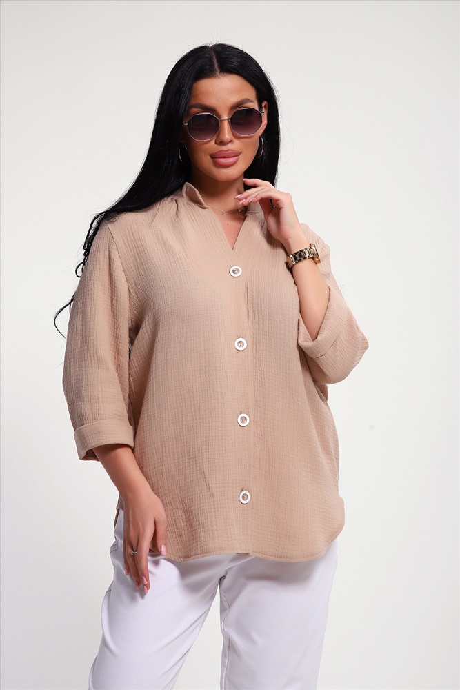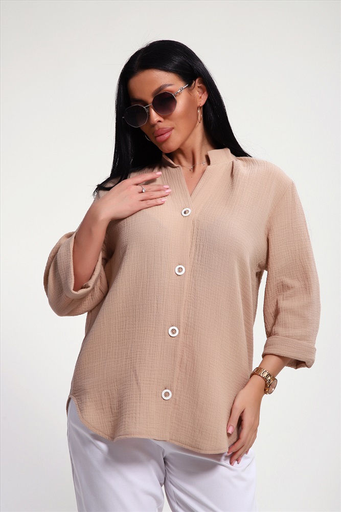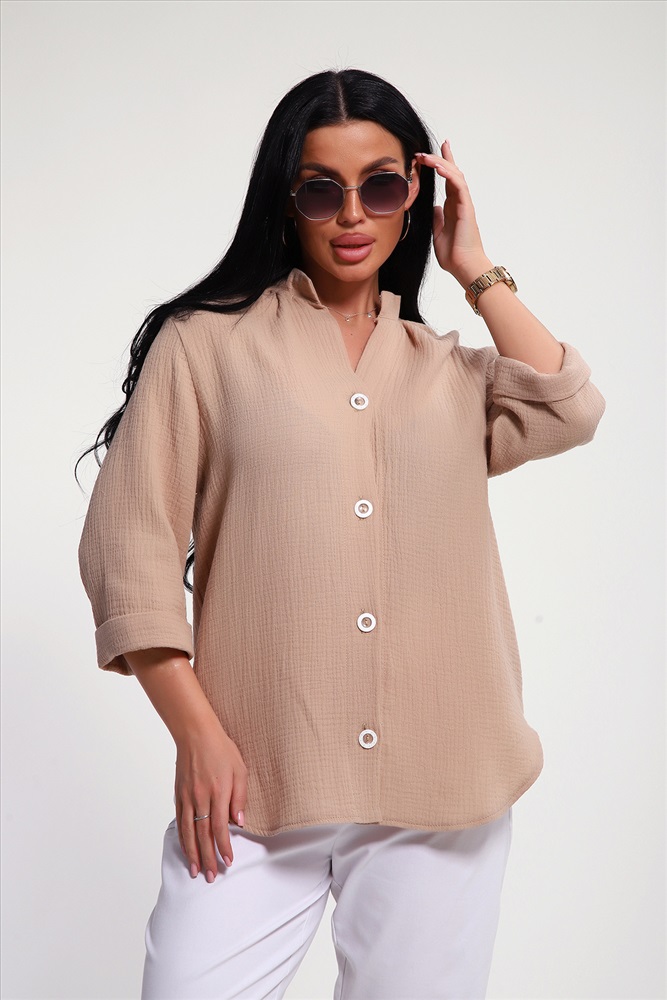 Состав: 100% хлопок Модель: Рубашка 32745 Тип товара: рубашка Материал: муслин | муслин Бренд: Натали Суслова Карман: без карманов Отделка: с манжетами Рисунок: однотонные Рукав: рукав 3/4 Сезонность: лето | осень | весна | зима Силуэт: свободный Стиль: нарядный | офисный | пляжный | повседневный Воротник: воротник стойка Застежка: пуговицы Женская муслиновая рубашка- это не просто предмет гардероба, это воплощение женственности, сочетающей в себе удобство, комфорт и безупречный вкус. Она станет вашим верным спутником при создании неповторимых образов, даря ощущение уверенности и свободы в любой ситуации. Муслин, известный своей невесомостью и воздушной структурой, позволяет коже дышать даже в самые жаркие дни. Свободный крой, удлиненный силует, фигурный низ рубашки, рукава 3/4 с манжетом, аккуратная стойка по горловине - эта модель воплощает в себе утонченную непринужденность и безупречный вкус. Застежка на петли и пуговицы образуют V-образный вырез по горловине, что удлиняет шею и подчеркивает женственность образа. Рекомендуется ручная стирка или бережная машинная стирка при 30 гр. Отжим при малых оборотах. Изделие практически не требует глажки, можно просто немного обработать паром. Таблица размеров и веса