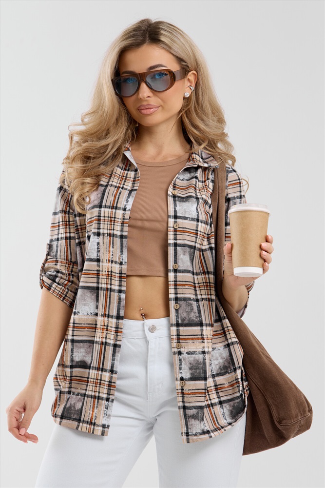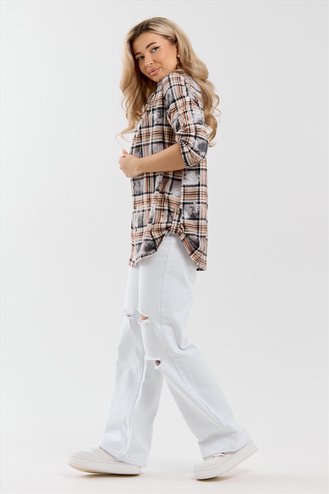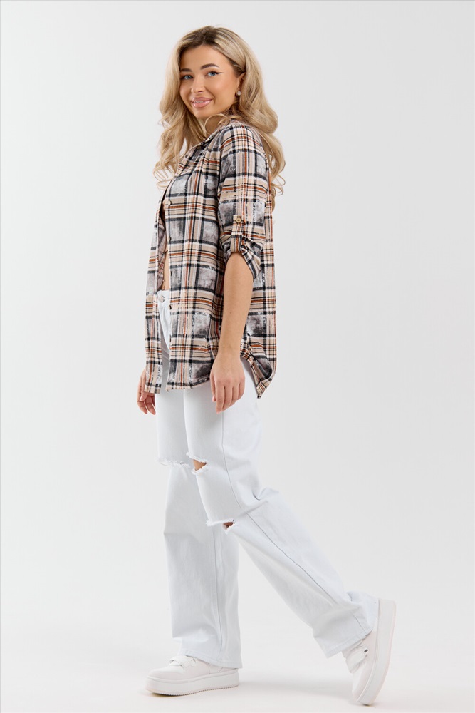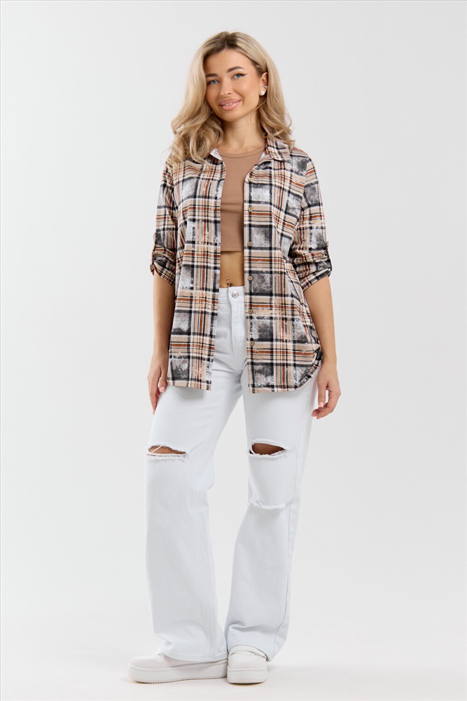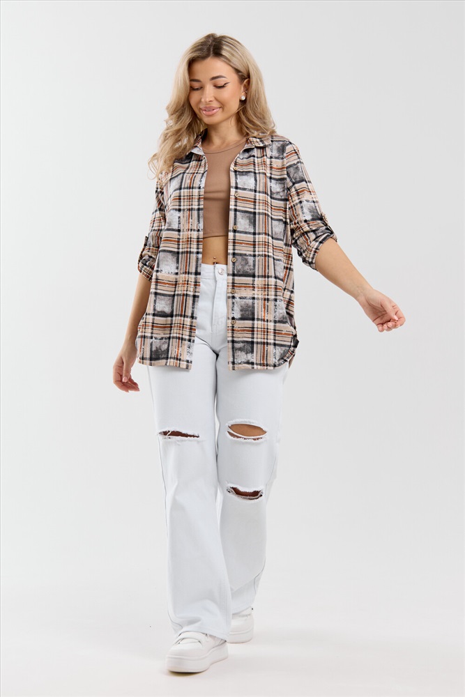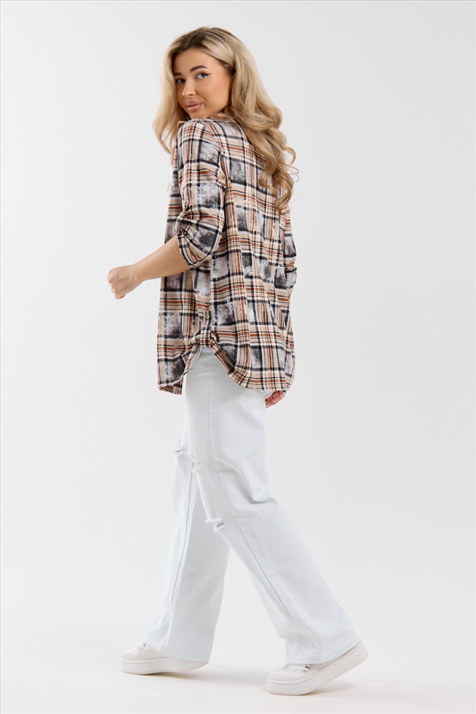 Состав: 100% хлопок Модель: Рубашка 36989 Тип товара: рубашка Материал: кулирка | кулирка Бренд: Натали Суслова Карман: без карманов Отделка: с патами Рисунок: клетка Рукав: рукав 3/4 Сезонность: лето | осень | весна | зима Силуэт: свободный Стиль: повседневный Воротник: рубашечный воротник Застежка: пуговицы Женская стильная туника - рубашка выполнена из 100% хлопчатобумажного полотна. Новый дизайн и отличное качество делает изделие модным, легким и приятным на ощупь, не сковывает движения, поэтому отлично подойдет как для школы, дома и работы, так и для повседневной носки. Модель дополняет рубашечный воротник, паты и планка с расстёгивающимися пуговицами, делая её более комфортной. Женская свободная рубашка не сковывает движения, поэтому отлично подойдет будущим мамам, беременным женщинам и кормящим. Расстёгивающаяся планка сделает кормление малыша удобным и комфортным, а за счет качественного хлопкового трикотажа еще и безопасным и экологичным. Мы специально разработали рубашку для женщин большого размера. Большие размеры любят и подростки, которые предпочитают вещи оверсайз (oversize). Рубашка женская - это базовая вещь в гардеробе девушки или женщины, является идеальным вариантом для офиса, работы, школы и путешествий. Удлиненную рубашку можно носить дома и в качестве повседневной одежды. Внимание! Замеры длины рукава проводились в застёгнутом виде. В расстёгнутом виде длина рукава добавится на 10 см. Таблица размеров и веса