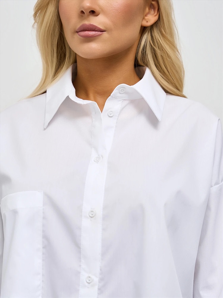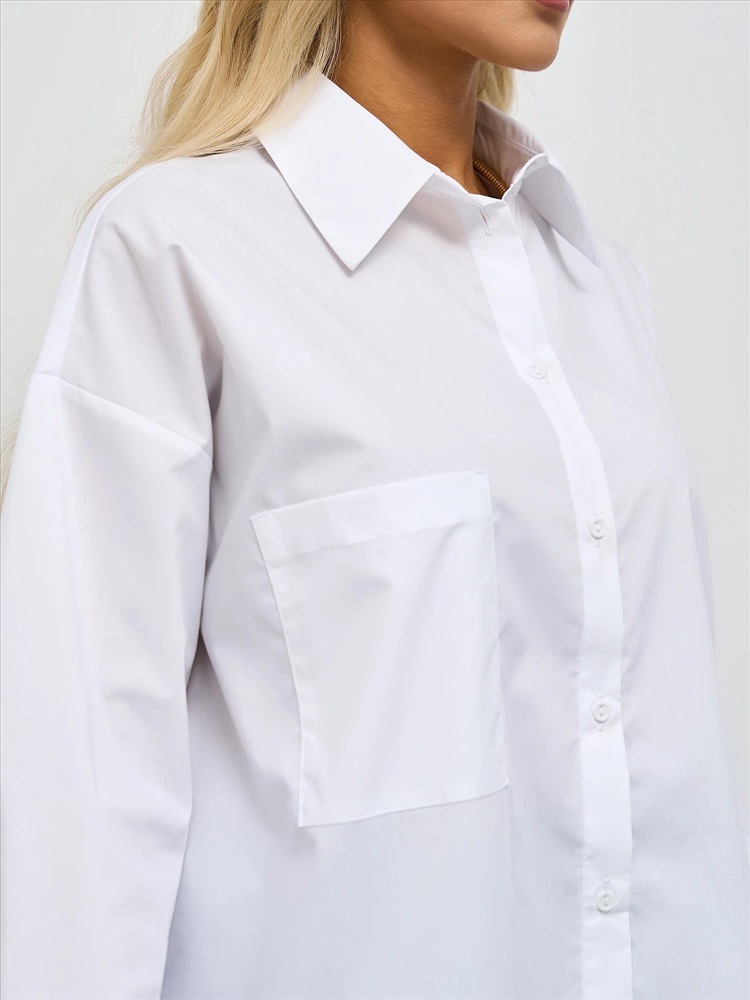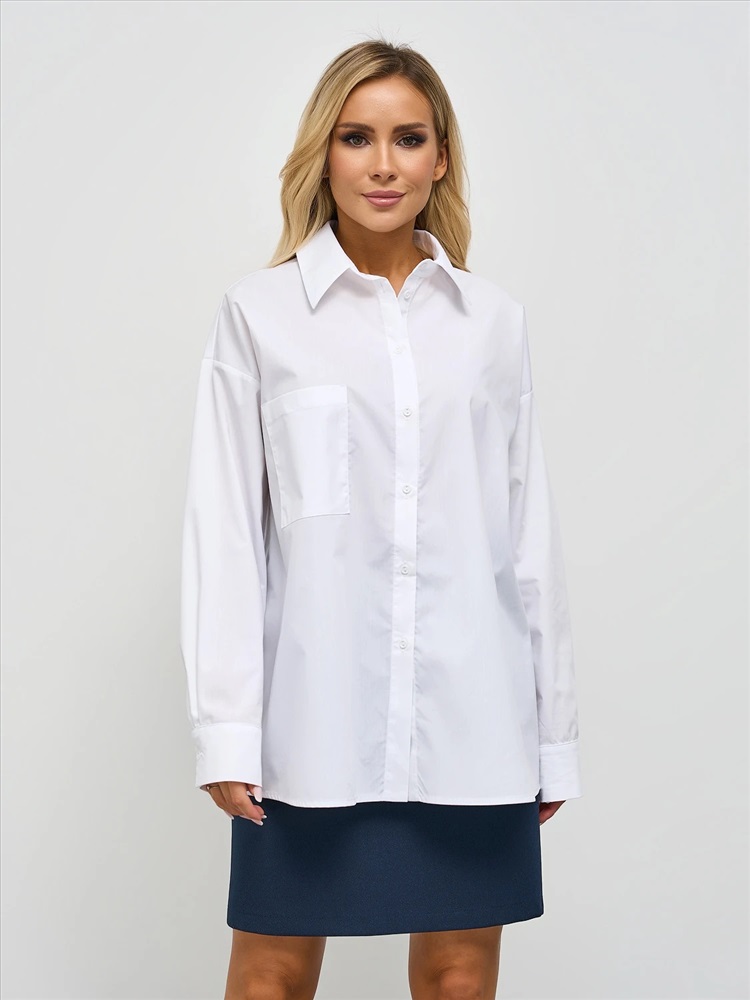 Спущенная линия плеча. Широкий рукав с манжетой на пуговице. По переду накладной карман. По спинке отрезная кокетка и центральная складка. Застежка на пуговицы. Комментарии к товару