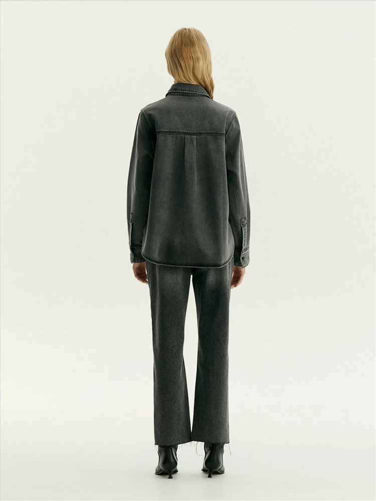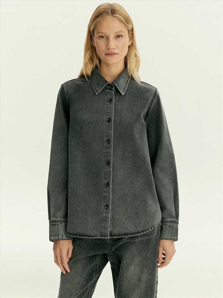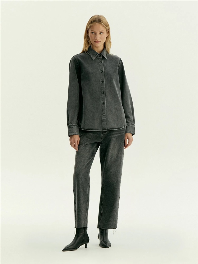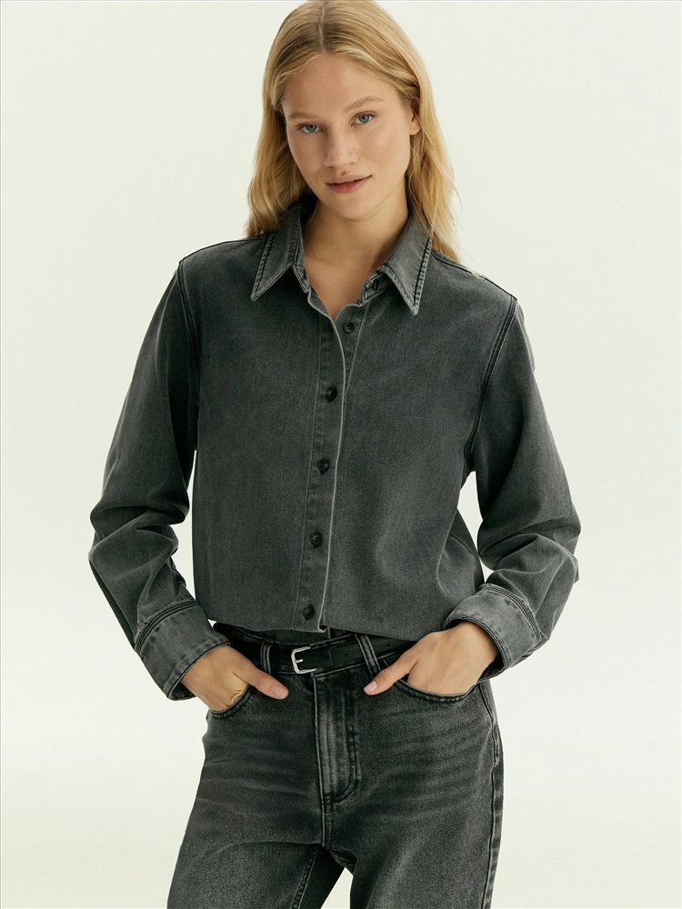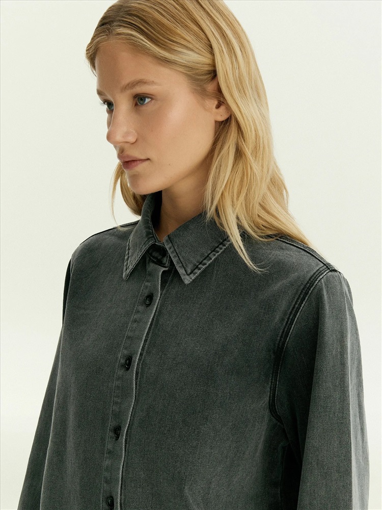 Рубашка для кэжуальных образов из мягкого денима в приятном оттенке графита, с лёгким винтажным эффектом. Модель выполнена с кокеткой сзади. Оттенок джинсовки позволяет сочетать её с разными близкими по тону джинсами коллекции, получая гармоничный образ.