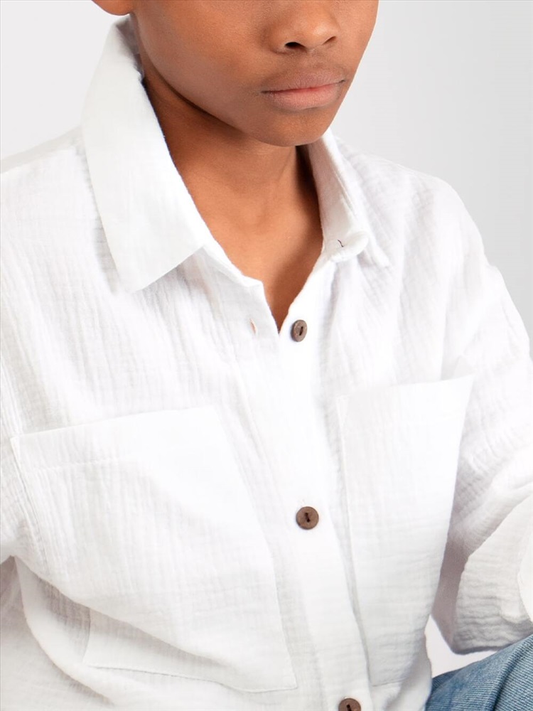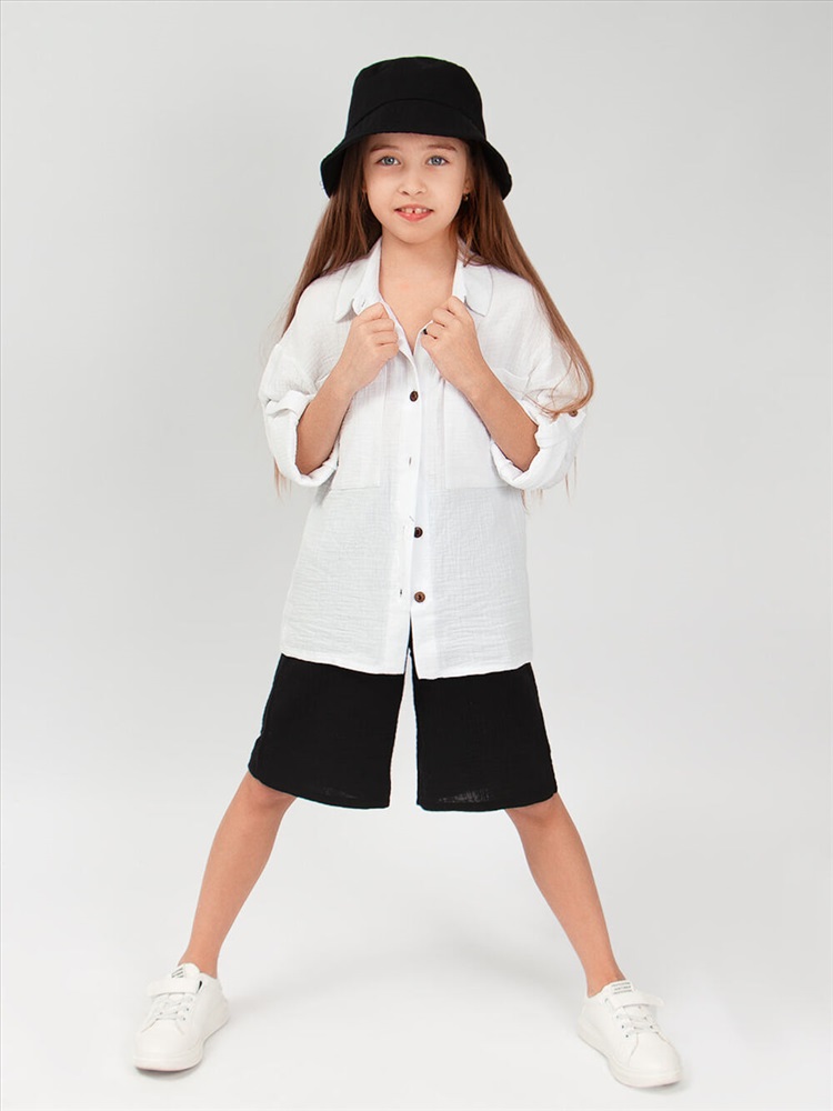 Застежка: пуговицы Стильная, детская, подростковая рубашка СольПерец свободного кроя. Рукава можно зафиксировать с помощью паты и пуговицы из кокоса. Модель рубашки с накладными карманами. Ткань-двухслойный муслин, хорошо пропускает воздух, защищает от солнца, идеально подходит для чувствительной кожи. Отличный выбор для отдыха у моря, бассейна, на пляже или на природе.