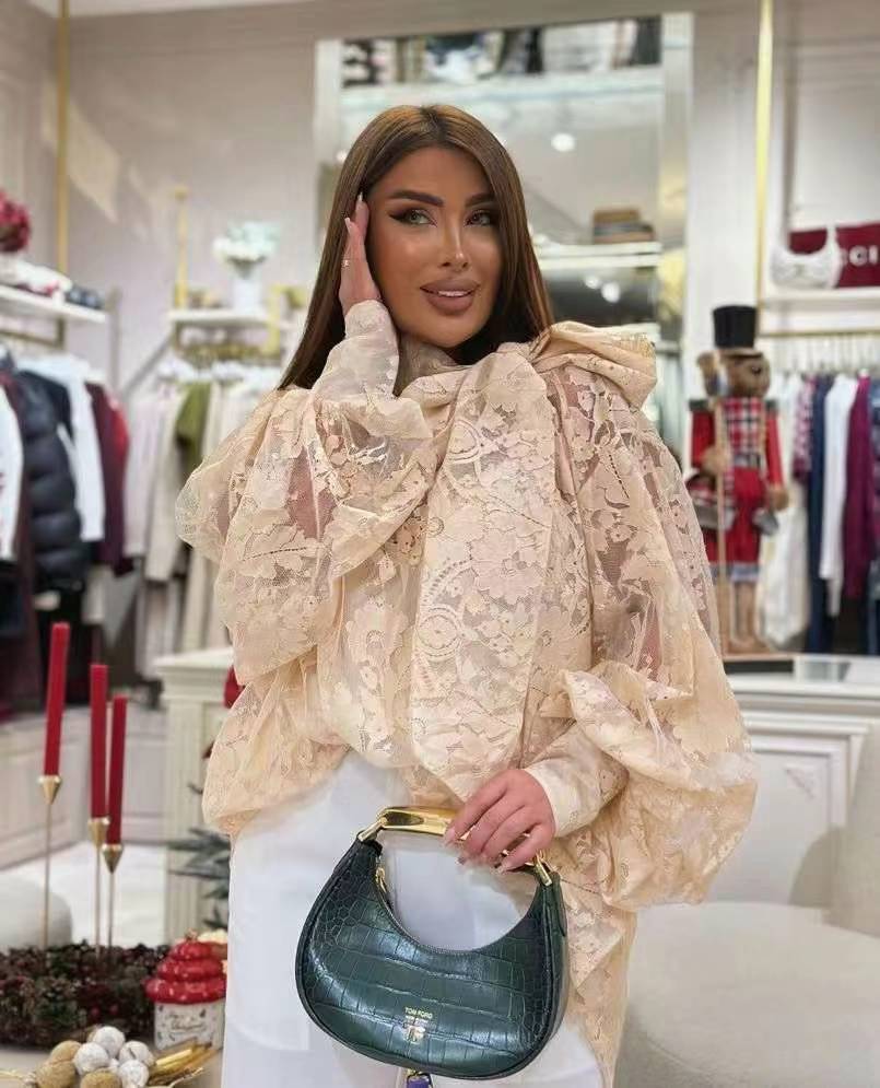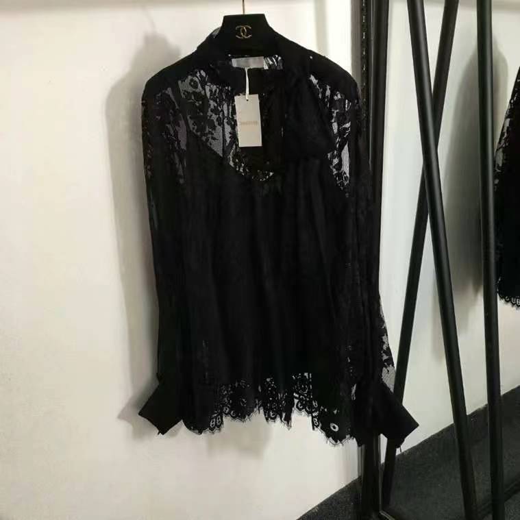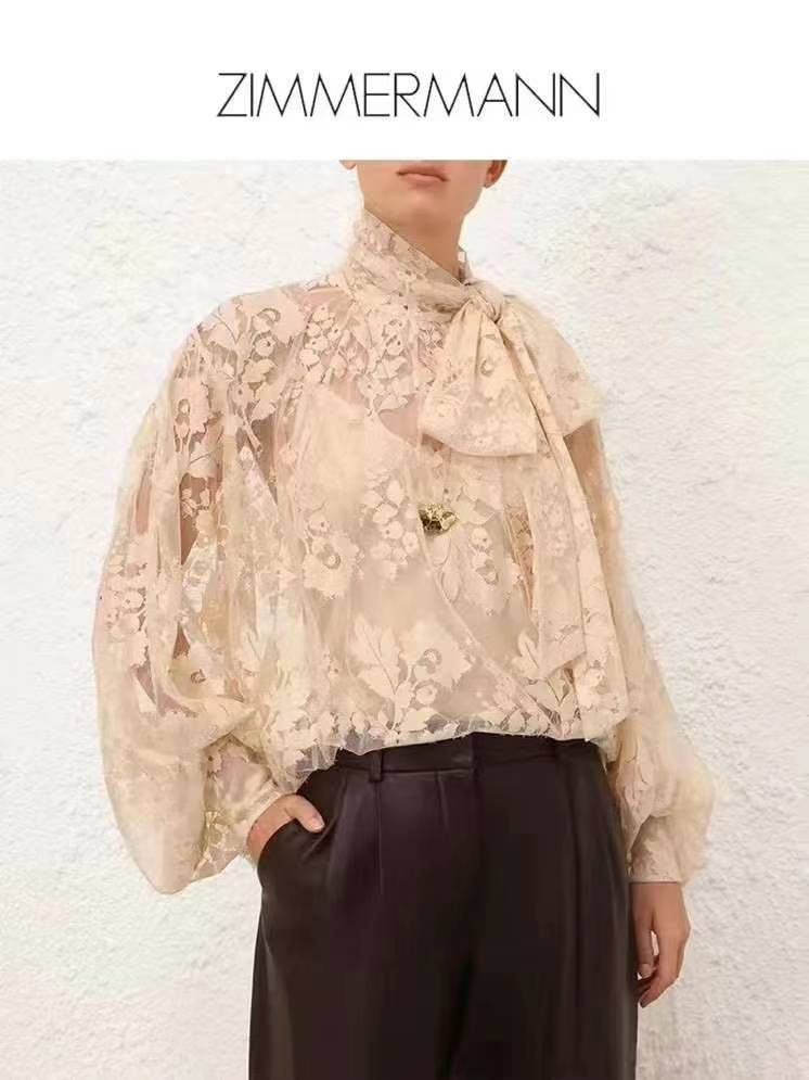 рубашка с длинными рукавами и сетчатым кружевом в цветочном стиле от Zimmermann, бежевый, черный, S-XL, [размер M; обхват груди 96, длина 52, ширина плеч 50, обхват груди 124, длина рукавов; 64, длина одежды 74]