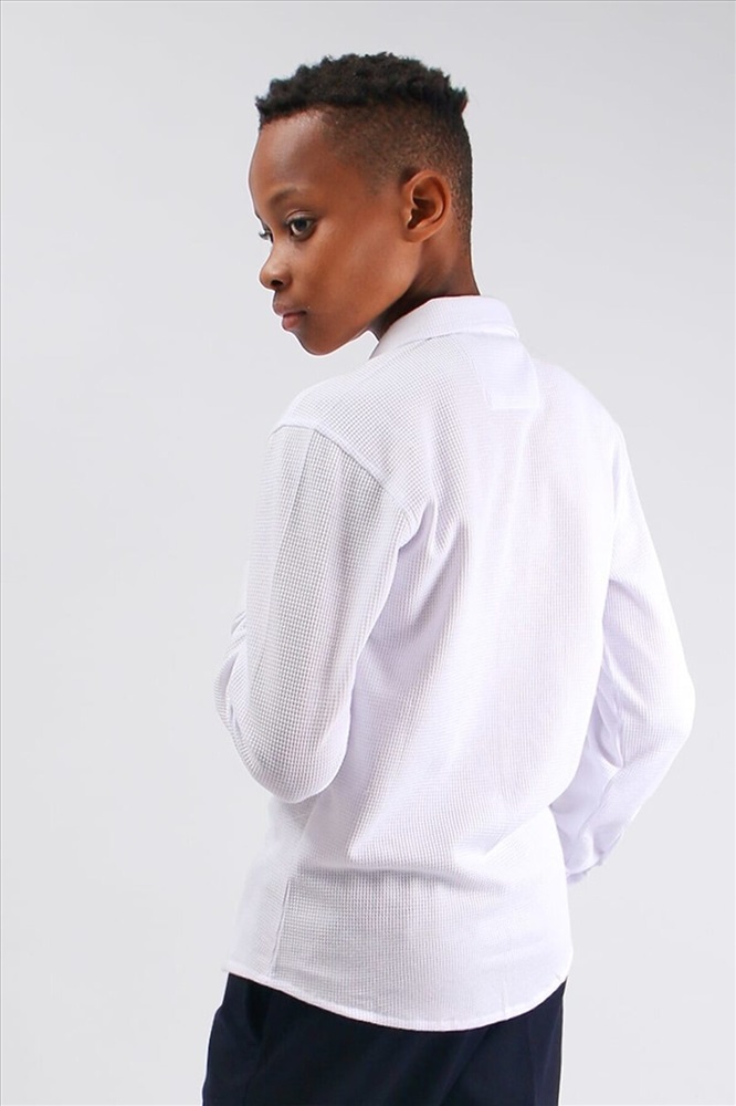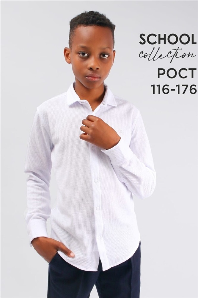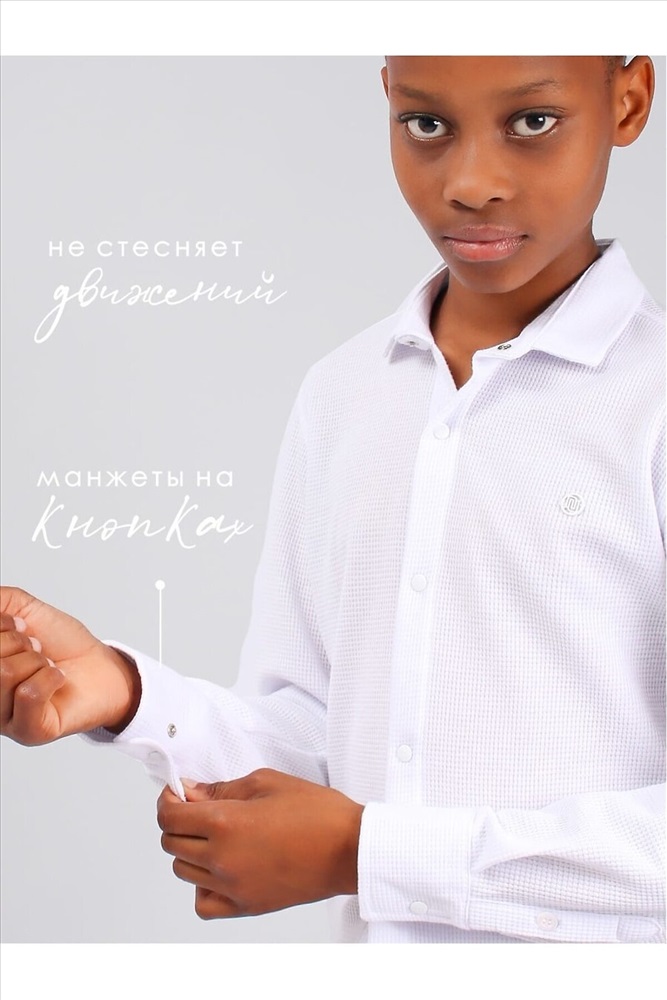ID товара: 926577 Состав: 95% Хлопок, 5% Эластан Сезон: Весна/Лето Длина: Средняя Фасон: Прямой Рукав: длинные Вид застежки: Пуговицы Вырез горловины: Отложной воротник Основная ткань: Хлопок Стиль: Повседневный Вид ткани: Трикотаж стрейч Страна бренда: Россия Страна производства: Россия Классическая рубашка для мальчика СольПерец прямого силуэта, на заклёпках. Модель идеально сочетается с брюками любого фасона и подойдет как для школы, так и для торжественного мероприятия. Комментарии к товару