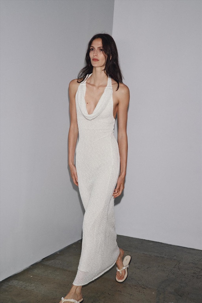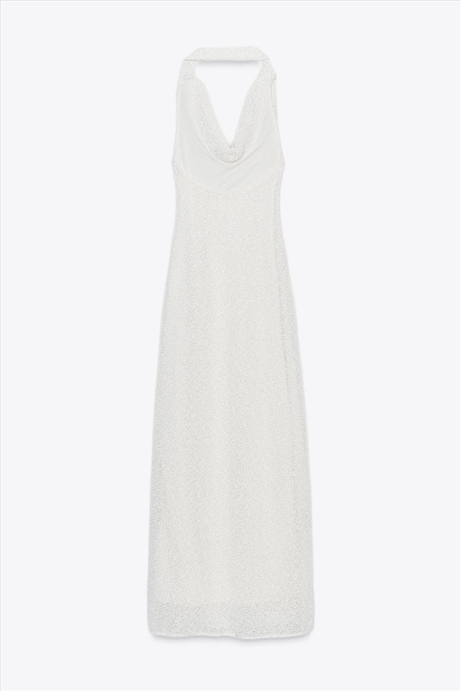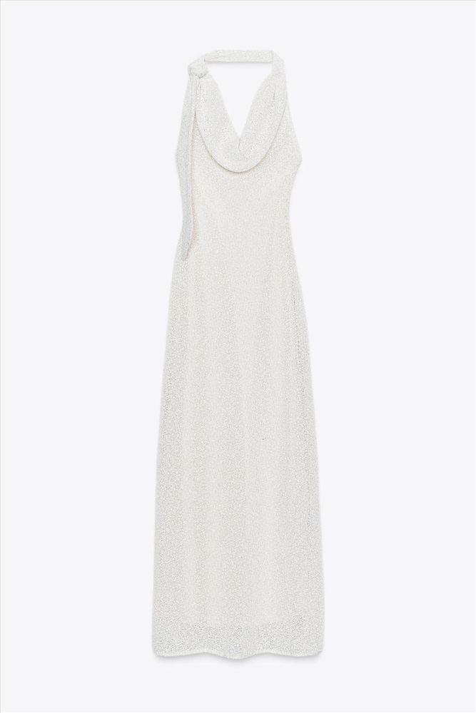 Dress with a flowing neckline and scarf in the same fabric. Open back. Short tonal lining. Straight hem. COMPOSITION, CARE & ORIGIN COMPOSITION OUTER SHELL 98% polyester LINING 100% polyester Which contains at least: OUTER SHELL 98% RCS certified recycled polyester LINING 100% RCS certified recycled polyester CERTIFIED MATERIALS RCS CERTIFIED RECYCLED POLYESTER Nowadays, recycled polyester is mainly made from PET plastic waste. This is a type of plastic that is widely used in a variety of items, such as plastic bottles. Using recycled materials helps limit the production of virgin polyester fibre. It is certified to the Recycled Claim Standard (RCS), which verifies the recycled content and tracks it from source to final product. Certified by Intertek 193341 More information CARE Caring for your garments to extend their useful life. Lower temperature washes and delicate spin cycles are gentler on garments and help to protect the colour, shape and structure of the fabric.