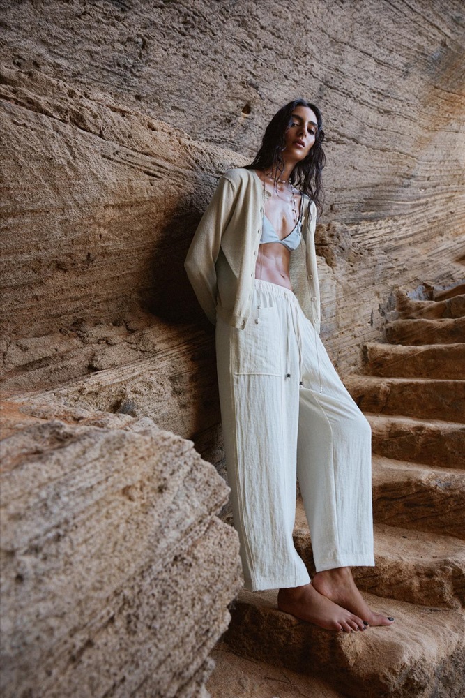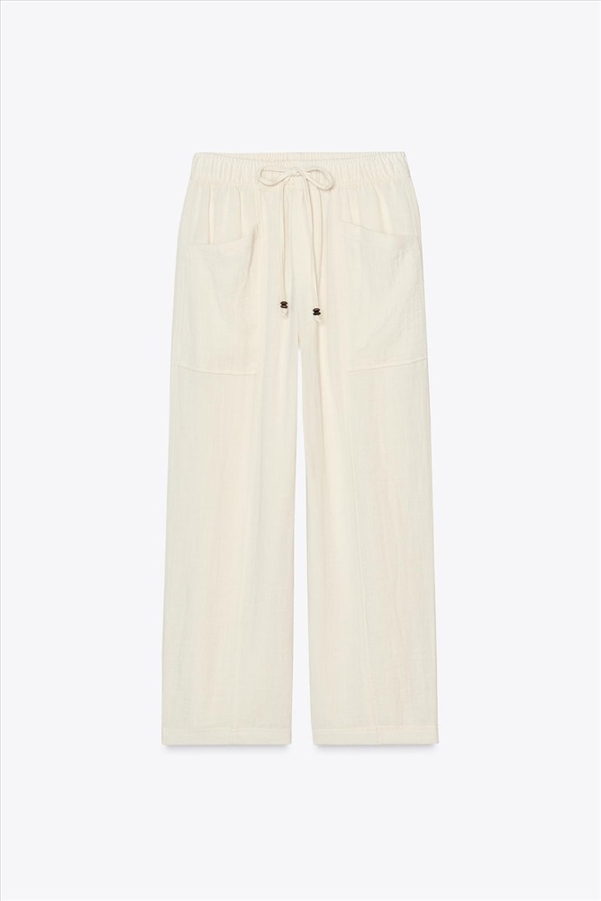 High-waist trousers with an elastic drawstring waistband. Patch pockets on the front and back. Straight leg. COMPOSITION, CARE & ORIGIN COMPOSITION OUTER SHELL 81% viscose CARE Caring for your garments to extend their useful life. Lower temperature washes and delicate spin cycles are gentler on garments and help to protect the colour, shape and structure of the fabric.