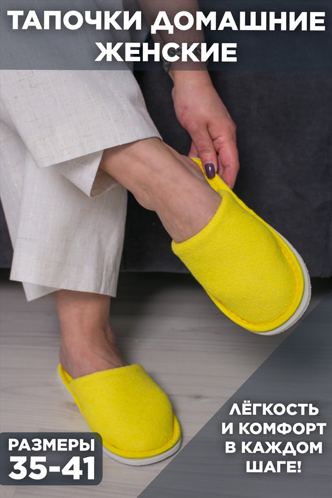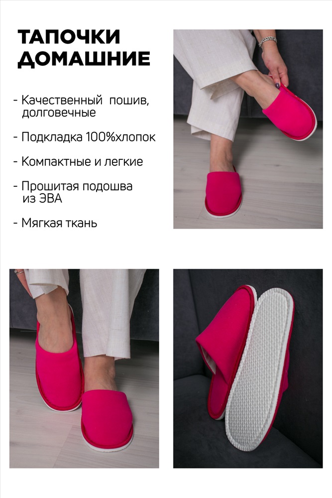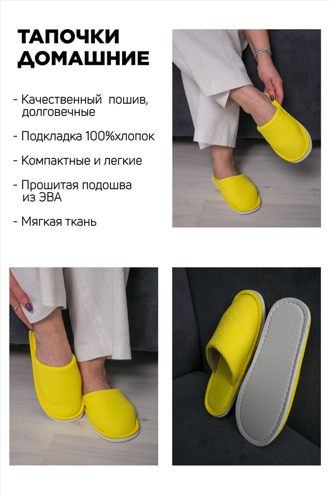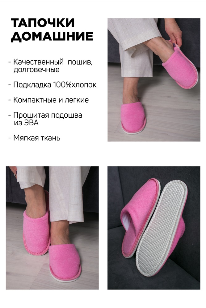 Стиль: домашний Махровые домашние тапочки - идеальный выбор для любителей комфорта и стиля. Благодаря широкому размерному ряду, трендовым цветам и лаконичному дизайну, эти женские тапки легко сочетаются с любым домашним нарядом. Приятная на ощупь ткань и удобная посадка делают их незаменимыми для повседневной носки. Прочная прошитая подошва ЭВА обеспечивает превосходную амортизацию, а открытая пятка способствует свободной циркуляции воздуха. Легкие и компактные пантолеты прекрасно подойдут для поездки или командировки. Они не займут много места в чемодане и станут отличным дополнением к вашему гардеробу. В то же время, они идеально подходят в качестве гостевых тапочек, радуя ваших посетителей своим комфортом и стильным внешним видом. Не упустите возможность порадовать своих близких изысканным и полезным подарком на Новый год, Рождество, 8 марта или просто так. Эти комнатные туфли станут прекрасным сюрпризом для мамы, бабушки, подруги или коллеги. Сочетайте их с любой домашней одеждой - халатами, пижамами или трикотажными костюмами, и наслаждайтесь комфортом каждый день. Изготовленные в г. Иваново из отечественных материалов, тапочки женские ИвШуз отличаются высоким качеством и стильным дизайном. Вся продукция сертифицирована и промаркирована, что подтверждает их соответствие высоким стандартам качества.