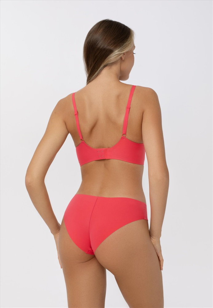Трусы-бразилиана со средней линией талии. Мягкая эластичная тесьма по верхнему краю. Передняя деталь с декоративной вставкой из сетки по бокам. Задняя деталь с лазерным краем.