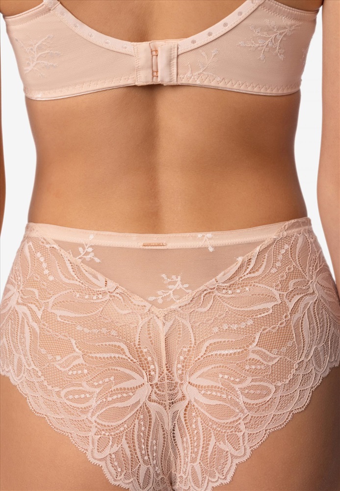 Трусы-хипстеры со средней линией талии. Передняя деталь выполнена из эластичной микрофибры и кружева. Задняя деталь из кружева с ажурными краями.