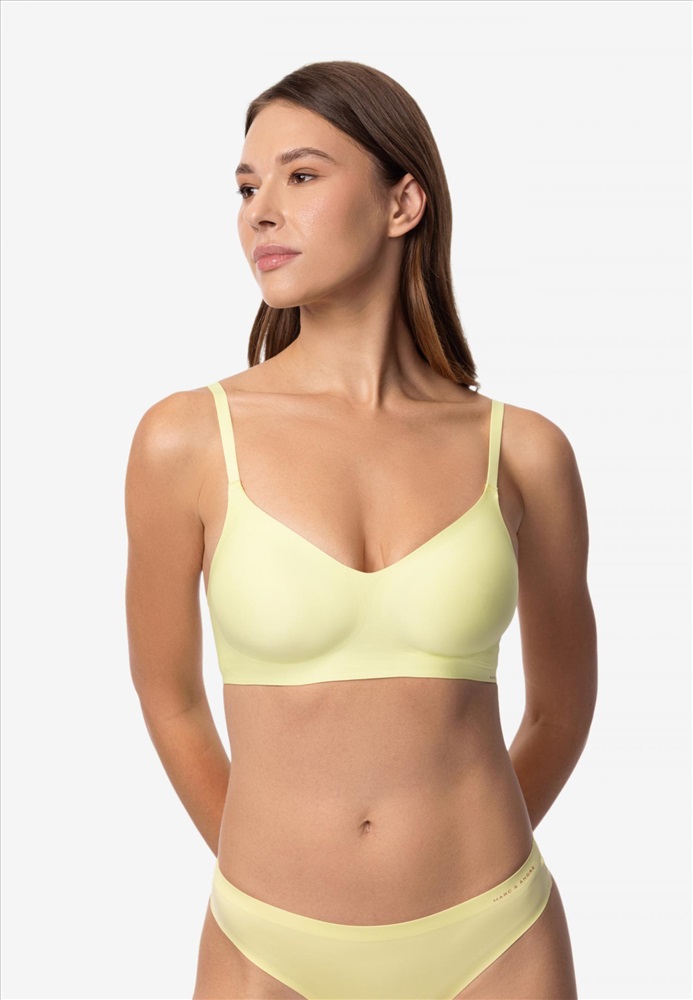 Бесшовный бескаркасный тонкий бюстгальтер. Абсолютное ощущение комфорта. Съемные тонкие вкладыши. Круглая спинка. Регулируемые бретели. Бюстгальтер выполнен из одной цельной детали.Технология «Sewfree».