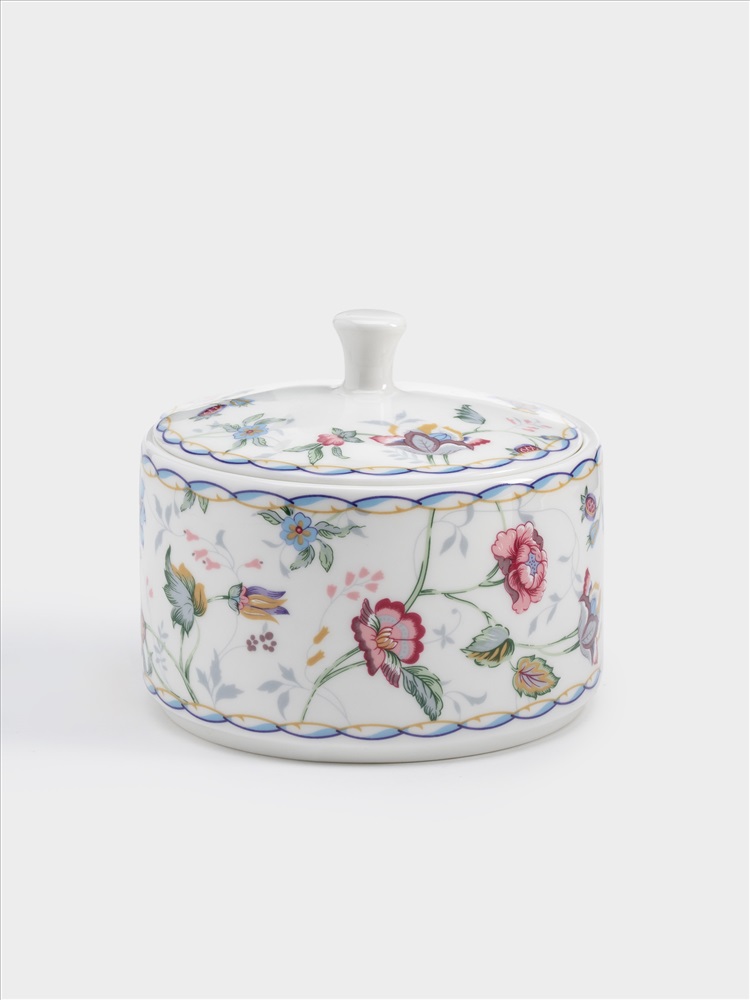Сахарница, 9 см, 250 мл, фарфор F, белая, Цветы, Buckingham. Материал: фарфор Fine Bone China. Мыть тёплой водой с применением жидких моющих средств и в посудомоечной машине. Можно использовать в СВЧ.